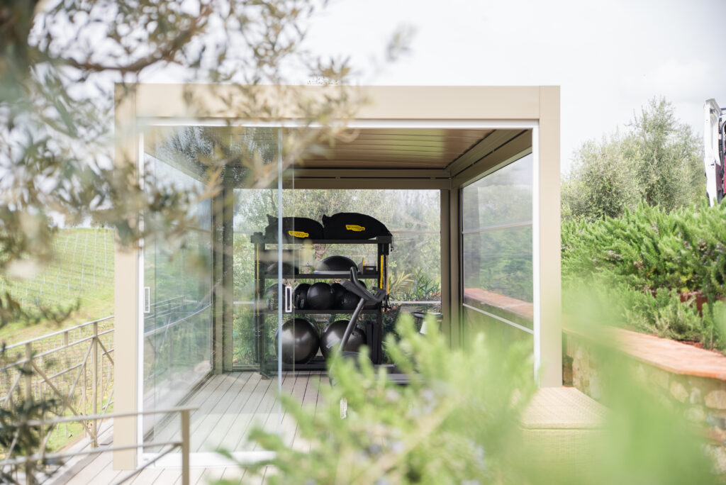 Nach einem Tag, an dem Sie die Weinberge des Chianti erkundet, Weinproben gemacht und malerische Spaziergänge unternommen haben, können Sie sich bei einer belebenden Fitnesseinheit erholen. Unser Wellnessbereich ist mit Technogym-Zubehör ausgestattet, das perfekt ist, um Energie, Gleichgewicht und Spannkraft während Ihres Toskana-Aufenthalts wiederherzustellen.