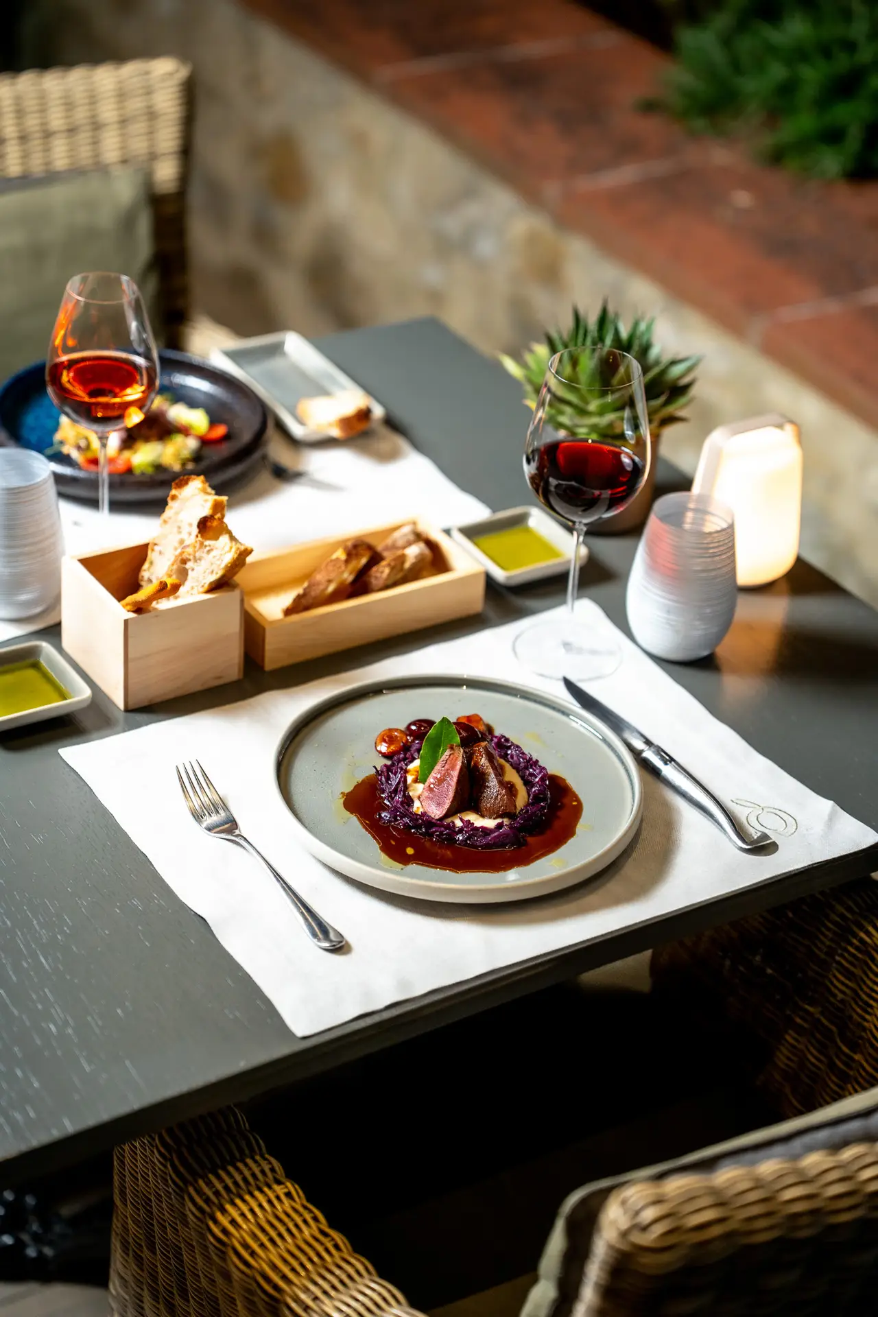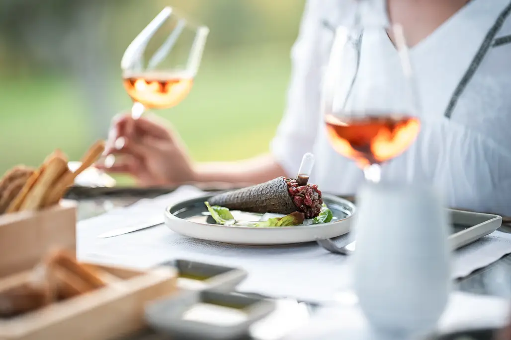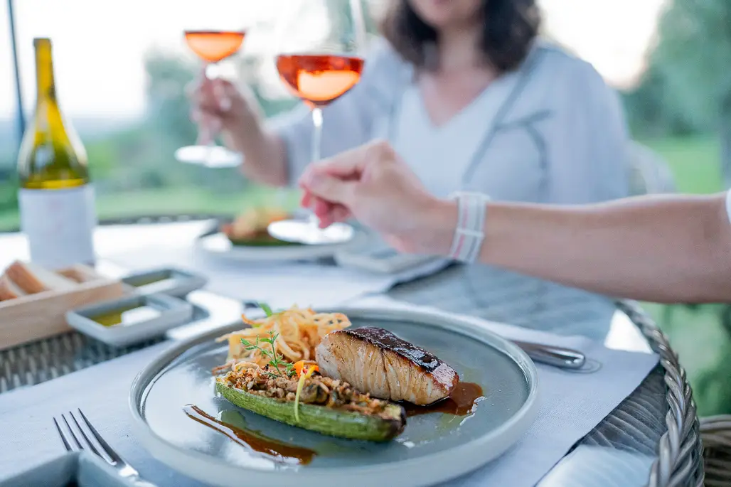 The rate includes: buffet breakfast, welcome bottle in the room, spa kit, lunch + tasting at Ein Belvedere winery, 1 dinner for 2 guests at Tavola di Guido restaurant with 3-course tasting menu and wine pairing, 2 massages of 50 minutes at our Anai Spa